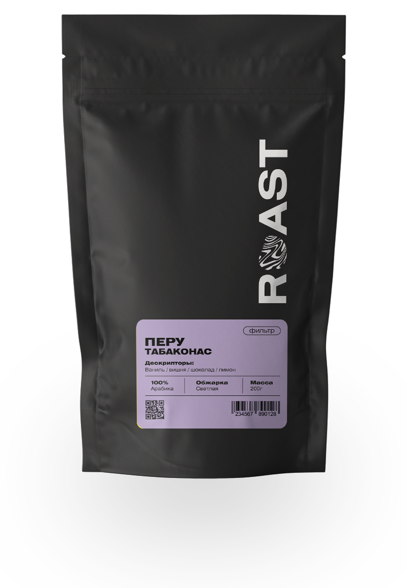 Кофе произрастает в районе Табаконас, регион Кахамарка, на севере Перу, недалеко от границы с Эквадором. Горный рельеф, прохладные ночи и средняя температура 18–22 °C создают условия для равномерного созревания ягод. После ручного сбора вишня проходит классическую мытую обработку с ферментацией и последующей сушкой на приподнятых столах, что подчёркивает прозрачность вкуса и яркость кислотности.